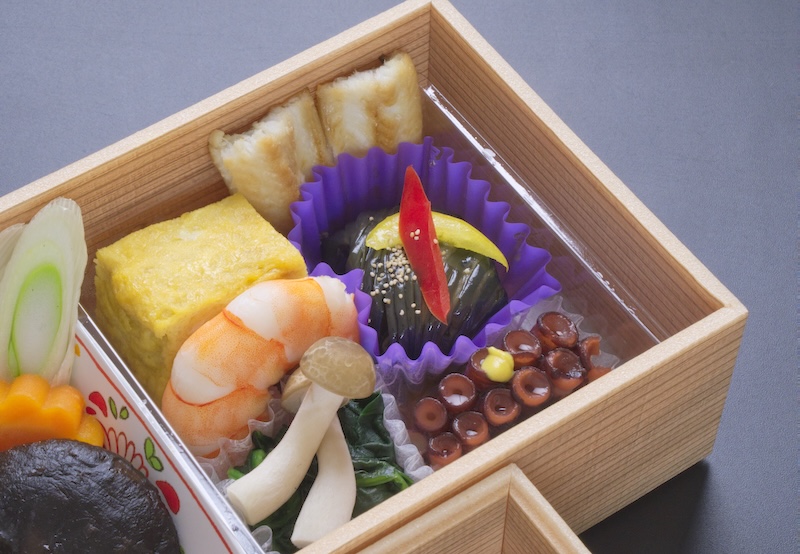 - 副菜予定(国産焼き穴子、揚げ茄子和風味、国産蛸柔らか煮、法蓮草・占地、海老白煮)